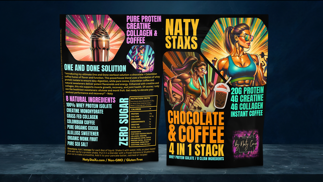 Naty Staxs - Fully Stax'd Coffee + Chocolate Protein Powder + Collagen + Creatine - 12 oz